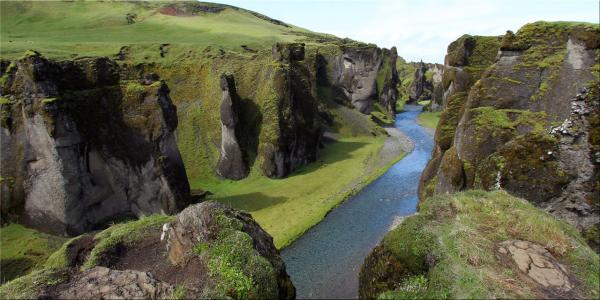 Erst gegen Mittag brachen wir dann auf um die Fjadrargljufur-Schlucht zu besuchen, ein 2 km langer Canyon in der Nähe des Ortes Kirkjubæjarklaustur (ja ich konnte diesen Namen auch erst nach vielen Übungen aussprechen) an der Südküste.