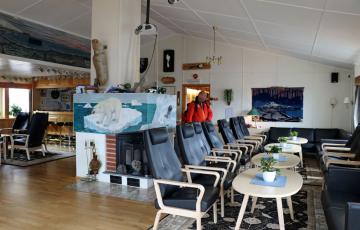 In der Station durften wir uns dann etwas umsehen und feststellen, daß es sich die Leute hier gutgehen lassen. Alles Wichtige für die Freizeit ist vorhanden, wie z.B. Billard, Tischtennis, Bar, Fernsehraum, Fitnessraum und sogar ein kleiner Pool mit dem netten Namen "Playa del Alge". Und auch ein winziger Souvenirshop für den Fall, daß doch mal ein paar Touris vorbeikommen und Postkarten oder gar ein T-Shirt wollen (denn wer kann schon sagen, daß er eine Postkarte von Jan-Mayen hat). Und überall findet man Vitrinen mit allerlei antiken Gegenständen die vom früheren Inselleben erzählen.......also fast schon wie im Museum.
