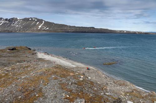 Am sog. Alkhornet durften wir an Land gehen um uns etwas in der Natur von Svalbard umzusehen. Die Betonung liegt auf "etwas".......denn auf Svalbard wohnen ja bekanntlich Eisbären und so darf man hier nur in bewaffneter Begleitung und eben nur in vorgegebenen Gebieten losziehen.