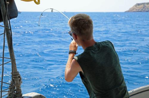 Doch ansonsten schmorten wir gemütlich unterm Sonnenschirm vor uns hin, die Jungs waren sowieso meist im Wasser anzutreffen und hatten vor allem ihren Spaß beim Schnorcheln und dem Beobachten der Fische. Eine kleine Angeltour durftemusste es natürlich auch mal sein....zwinker
