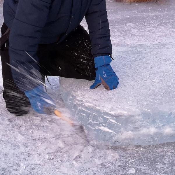 Gegen Abend kam unser Flori noch auf die Idee es mal wieder mit einem kleinen Eis-Kunstwerk zu versuchen und hat dann, in Zusammenarbeit mit Felix, einen Smiley gesägt, gehackt, geschliffen, geschabt und was auch immer......