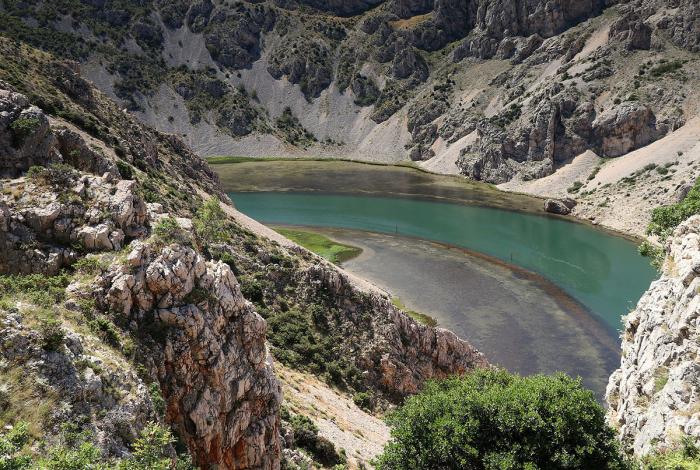 Nicht mal ein klitzekleines Hinweisschild weist darauf hin......aber trotzdem finden natürlich die Touristen den schmalen holprigen Pfad der scheinbar ins Nichts führt, aber dann an einer Stelle über dem Zrmanja Canyon endet.
