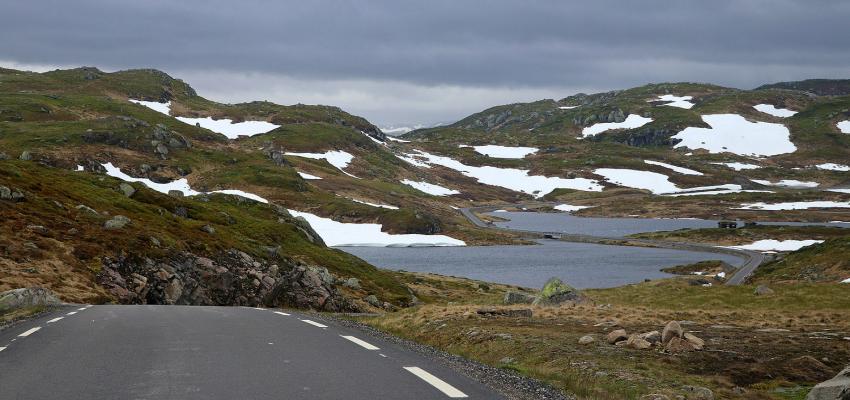 Der nächste Tag begann zwar auch sehr dunkelgrau, sogar mal mit leichtem Graupelschauer und kalt.....auf dem Weg weiter zum Lysefjorden zeigte das Thermometer doch tatsächlich plötzlich nur noch 1 Grad an ! Aber je weiter man wieder runter kam vom Gebirge, umso höher stiegen die Temperaturen wieder (also wenn man sich mit 7 Grad zufrieden gibt.....grins).
