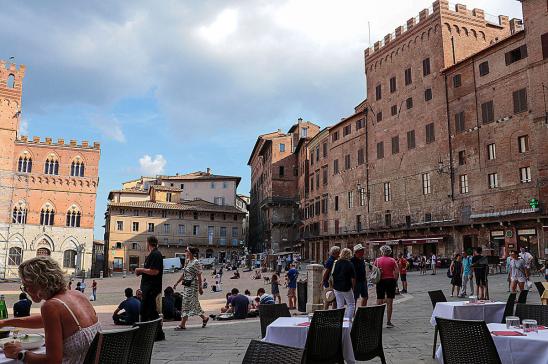 Was ich letztens nicht erwähnt habe war, daß wir nach Ankunft in Siena am gleichen Abend noch den Dom besichtigt haben (also Flori und Mamsen) und dann auch noch zu einem Aussichtspunkt gewandert sind, wo wir bei Sonnenuntergang einen herrlichen Blick über die Stadt genießen konnten.