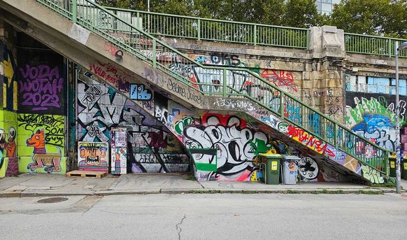 Doch nicht nur die Gebäude waren interessant, auch den berühmten Naschmarkt haben wir besucht oder z.B. den Donaukanal mit den unzähligen Graffitis am Ufer.