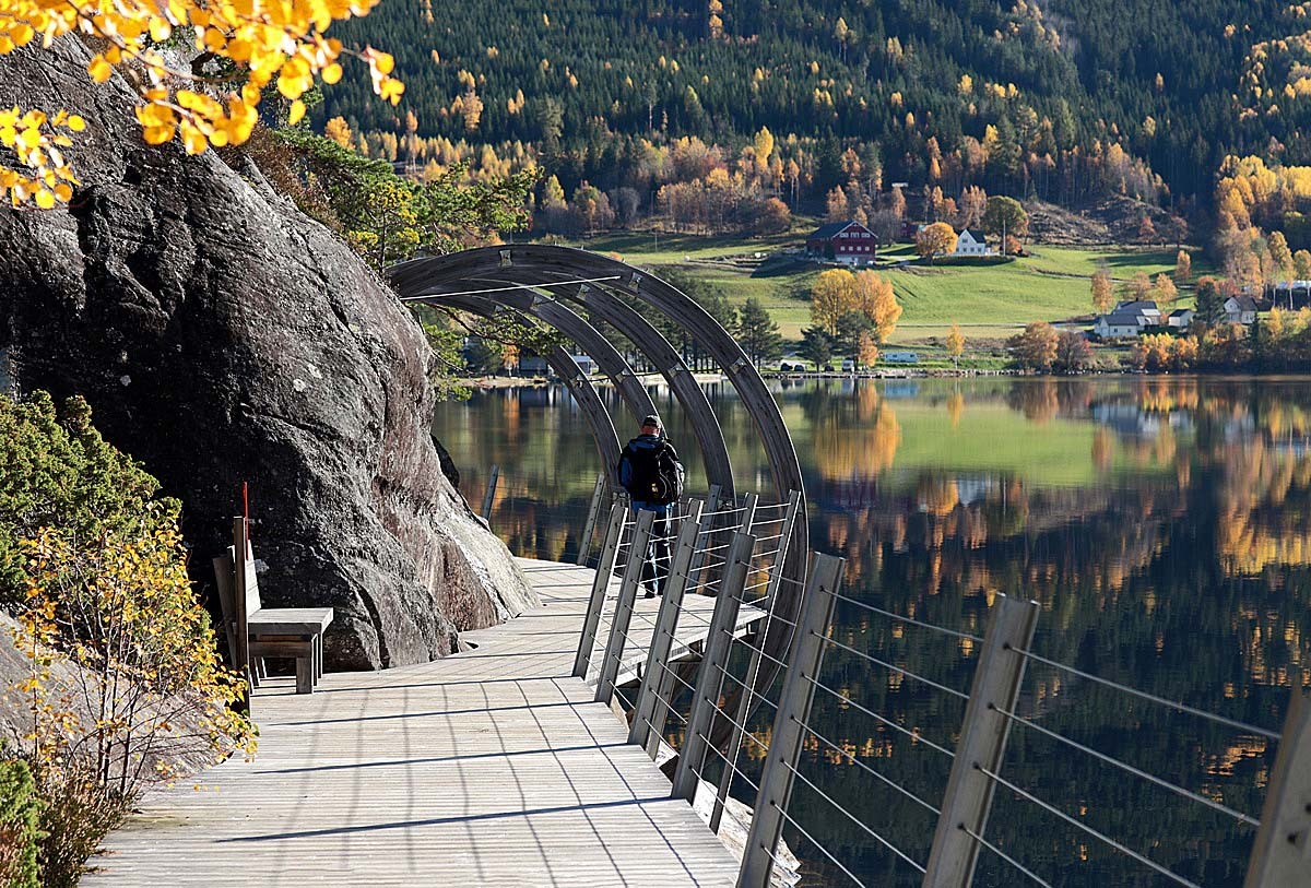 Also musste der Weltbeste mit mir ins Fyresdal (gut 2 Autostunden entfernt) und durfte sich mit mir auf eine kleine Wanderung begeben. Dort gibt es einen "Tretoppveien" also quasi einen "Baumwipfelweg" den ich schon seit längerem auf der To-Do-Liste hatte. Und auch unterhalb des Baumwipfelweges kann man gut umherwandern und z.B. eine Halbinsel umrunden.